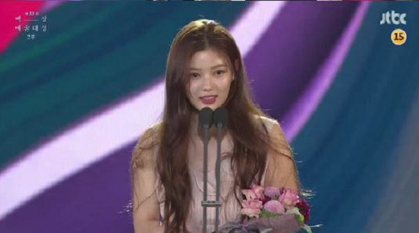 김유정은 이날 "무엇을 담지 않더라도 그 그릇 자체로 빛나는 성실한 배우가 되겠다"라며 18살 어린나이임에도 불구하고 당찬 모습을 보였다.