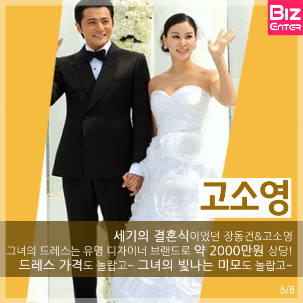 세기의 결혼식이었던 장동건&고소영. 그녀가 입은 드레스는 유명 디자이너 브랜드로 약 2000만원 상당! 드레스 가격도 놀랍고~ 그녀의 빛나는 미모도 놀랍고~