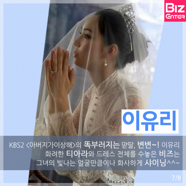 KBS2 <아버지가이상해>의 똑부러지는 맏딸, 변변~! 이유리. 화려한 티아라와 드레스 전체를 수놓은 비즈는 그녀의 빛나는 얼굴만큼이나 화사하게 샤이닝^^~