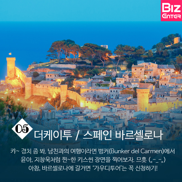 캬~ 경치 좀 봐. 남친과의 여행이라면 벙커(Bunker del Carmen)에서 윤아, 지창욱처럼 찐~한 키스씬 장면을 찍어보자. 므흣 (。-_-。) 아참, 바르셀로나에 갈거면 '가우디투어'는 꼭 신청하기!
