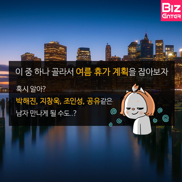 이 중 하나 골라서 여름 휴가 계획을 잡아보자. 혹시 알아? 박해진, 지창욱, 조인성, 공유같은 남자 만나게 될 수도..?