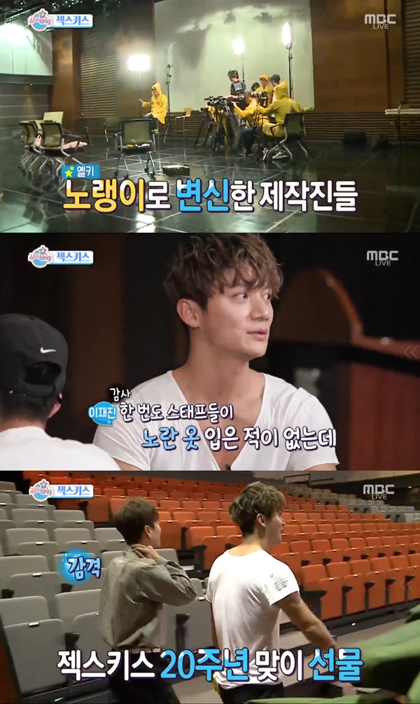 이날 방송에서 젝스키스는 섹션TV 스텝들의 색다른 축하방법에 감동을 받았다. 인터뷰에 나선 리포터 박슬기를 포함, 모든 스텝이 젝스키스의 상징인 노란색 옷을 입고 있었던 것.