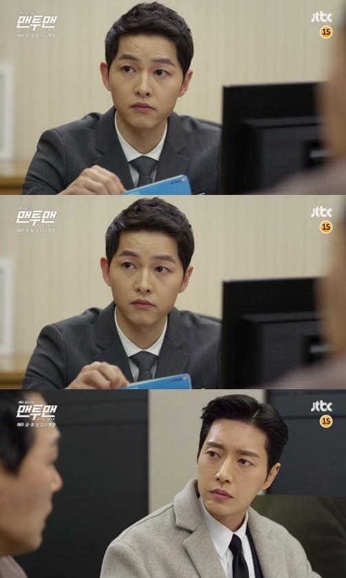 먼저 ‘태양의 후예' 유시진 대위가 은행원으로 돌아온다. 지난 13일 오후 방송된 JTBC 금토드라마 '맨투맨'(극본 김원석, 연출 이창민, 제작 드라마하우스·마운틴 무브먼트 스토리)에서는 송중기의 등장 예고화면이 공개 돼 시선을 모았다.