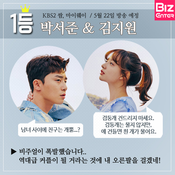 방송예정 드라마 커플 순위 1등, 박서준&김지원. 네 생각과 얼추 맞는 거 같아? 빨리 방송해 주세요, 현기증 난단 말이에요~!