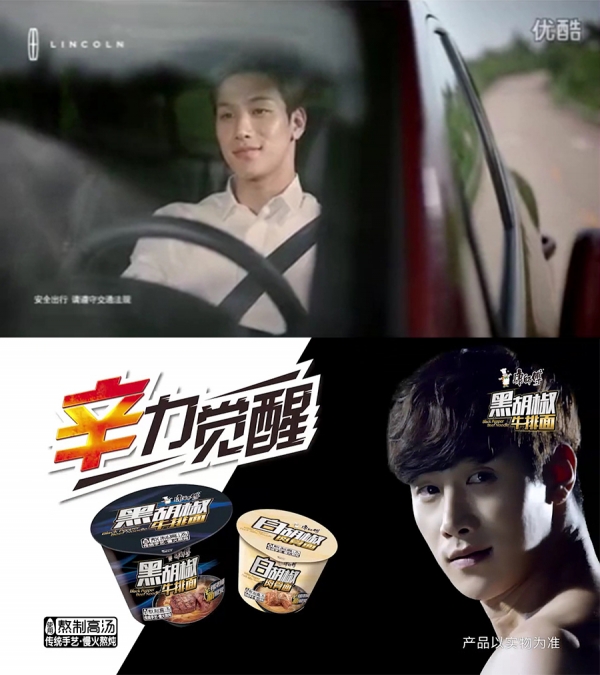 2012년부터 SK 기업 광고를 시작으로 롯데카드, 우르오스, SONY, 맥도날드, KFC, 도루코, 현대해상 등에 출연했다. 중국의 라면회사 캉스푸와 자동차 링컨의 CF에도 나오면서 해외 팬들도 다수 거느리고 있다.