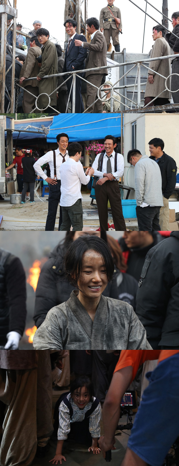 영화 '군함도'가 배우들의 끈끈한 팀워크가 느껴지는 현장 스틸을 공개했다.