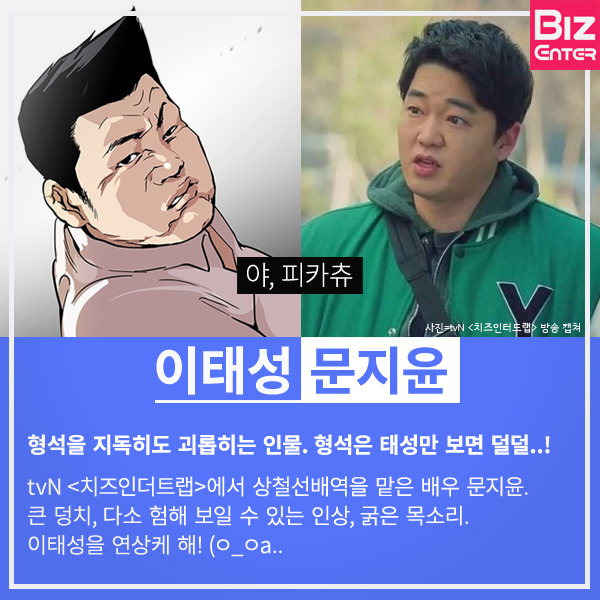 형석을 지독히도 괴롭히는 인물. 형석은 태성만 보면 덜덜..! tvN <치즈인더트랩>에서 상철선배역을 맡은 배우 문지윤. 큰 덩치, 다소 험해 보일 수 있는 인상, 굵은 목소리. 이태성을 연상케 해! (ㅇ_ㅇa...