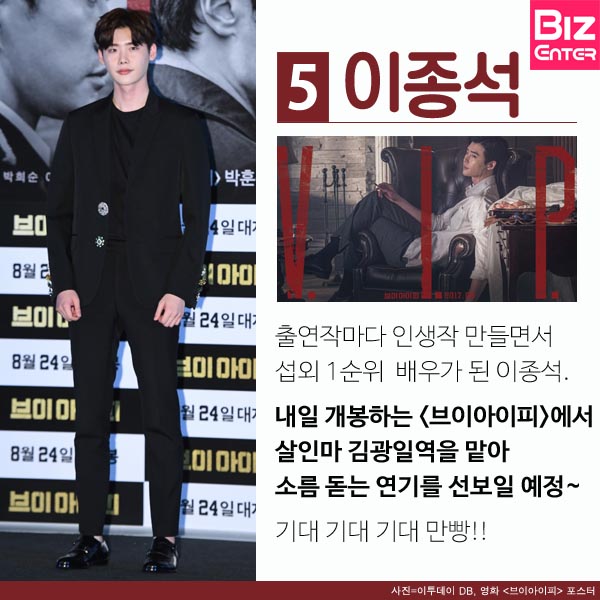 출연작마다 인생작 만들면서 섭외 1순위 배우가 된 이종석. 내일 개봉하는 영화 <브이아이피, (V.I.P., 2017)>에서 살인마 김광일역을 맡아 김명민, 장동건, 박희순 등과 함께 소름 돋는 연기를 선보일 예정~ 기대 기대 기대 만빵!!