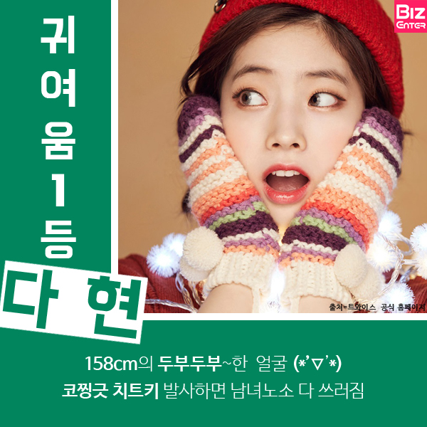 귀여움 1등 다현 158cm의 두부두부~한 얼굴. 코찡긋 치트키 발사하면 남녀노소 다 쓰러짐