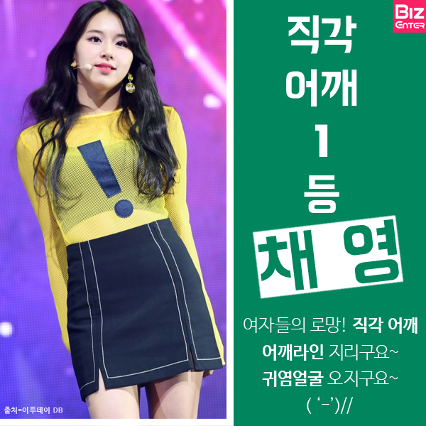 직각 어깨 1등 채영 여자들의 로망! 직각 어깨. 어깨라인 지리구요~ 귀염얼굴 오지구요~