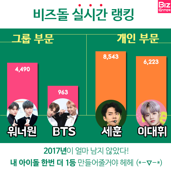2017년이 얼마 남지 않았다! 내 아이돌 한번 더 1등 만들어줄거야 헤헤