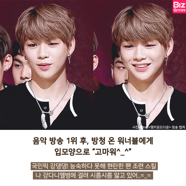 음악 방송 1위 후, 방청 온 워너블에게 입모양으로 "고마워^_^" 국민픽 강댕댕! 능숙하다 못해 현란한 팬 조련 스킬. 나 강다니엘병에 걸려 시름시름 앓고 있어..=_=