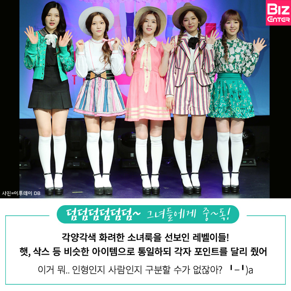 각양각생 화려한 소녀룩을 선보인 레벨이들! 햇, 삭스 등 비슷한 아이템으로 통일하되 각자 포인트를 달리 줬어. 이거 뭐.. 인형인지 사람인지 구분할 수가 없잖아?