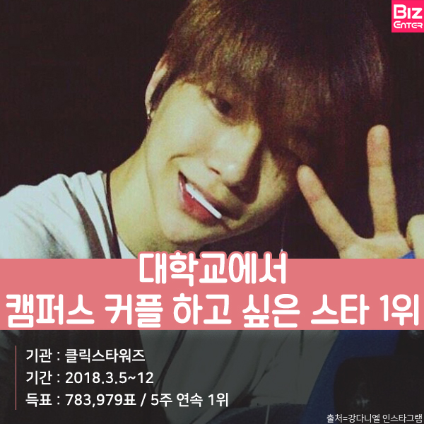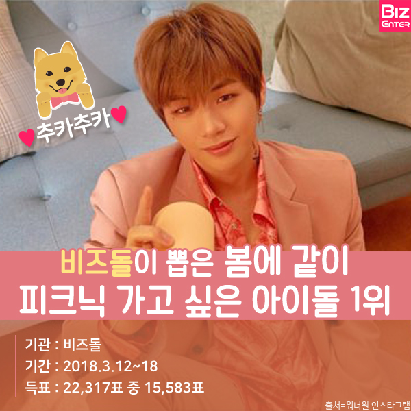 비즈돌이 뽑은 봄에 같이 피크닉 가고 싶은 아이돌 1위 강다니엘