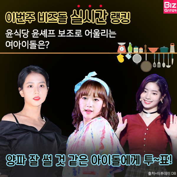 이번주 비즈돌 실시간 랭킹! 윤식당 윤셰프 보조로 어울리는 여아이돌은?