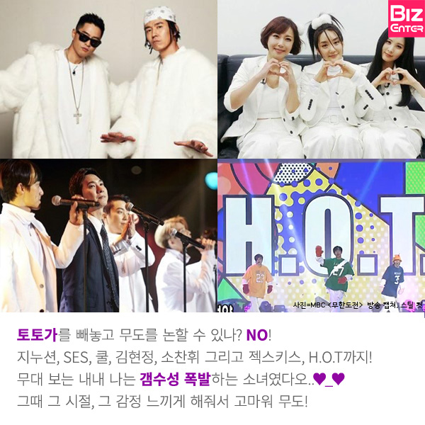 토토가를 빼놓고 무도를 논할 수 있나? No! 지누션, SES, 쿨, 김현정, 소찬휘 그리고 젝스키스, H.O.T까지! 무대 보는 내내 나는 갬수성 폭발하는 소녀였다오.. 그때 그 시절, 그 감정 느끼게 해줘서 고마워 무도!