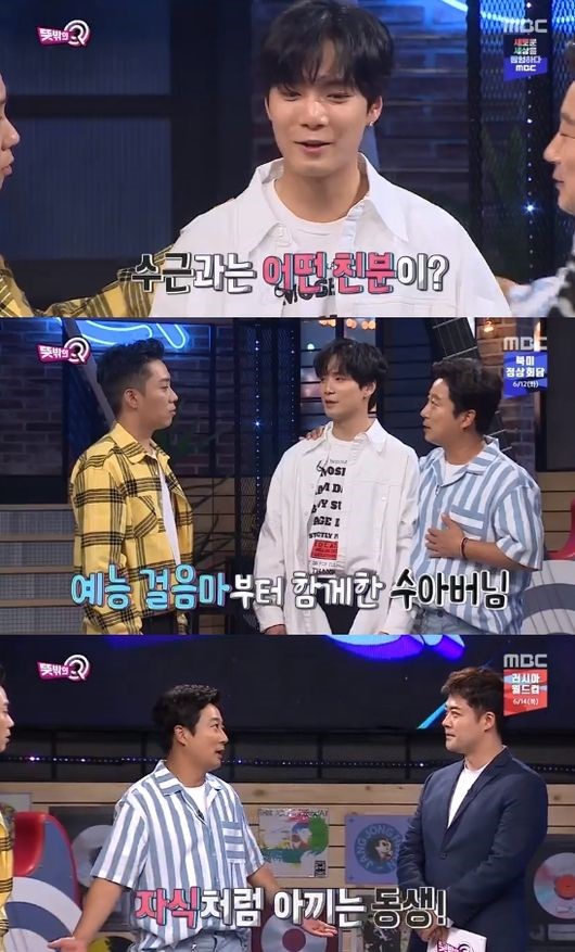이날 이수근은 JR을 소개하며 "이 분의 팬들이 나를 '수아버지'라고 부른다. 내가 자식처럼 사랑하는 동생이다"라고 말했다.