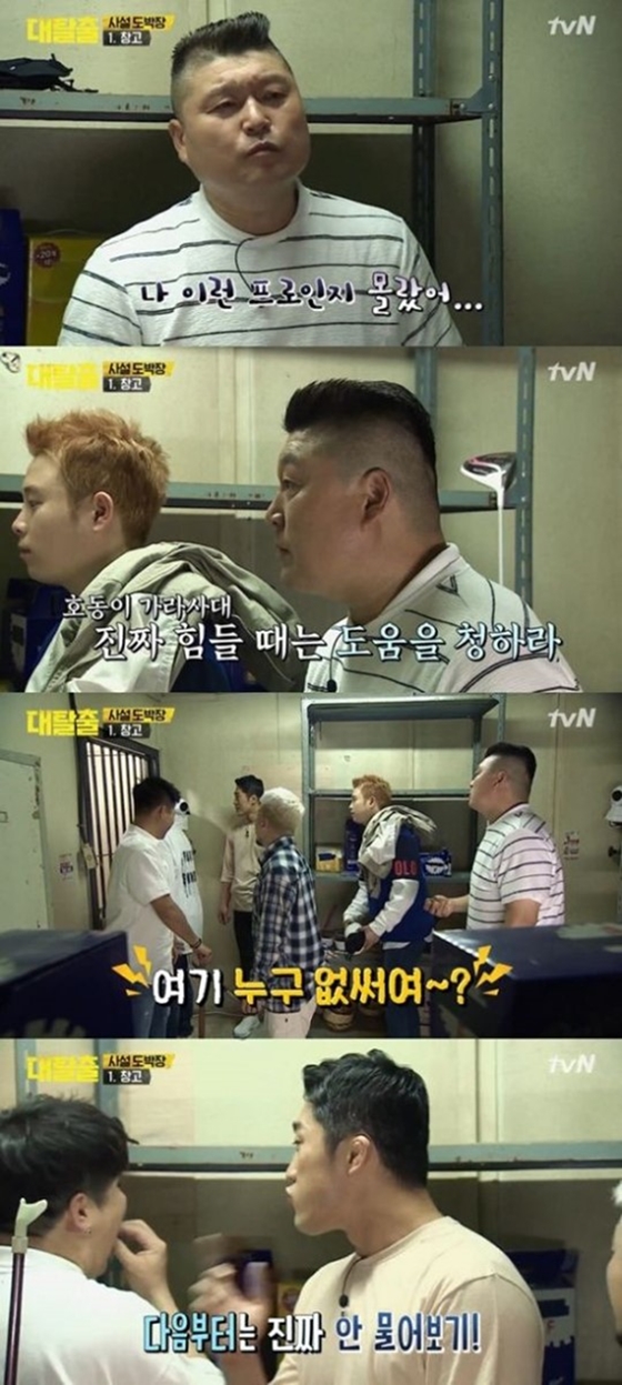 1일 방송된 tvN '대탈출'에서는 강호동, 김종민, 신동, 피오, 김동현, 유병재 등이 도박장 탈출을 시도하는 모습이 그려졌다.
