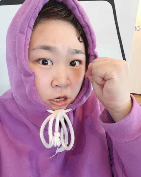 공개된 사진에는 홍윤화가 후드 티셔츠를 입고 운동하는 모습이 담겼다. 홍윤화는 의지 넘치는 표정으로 각오를 다졌다.