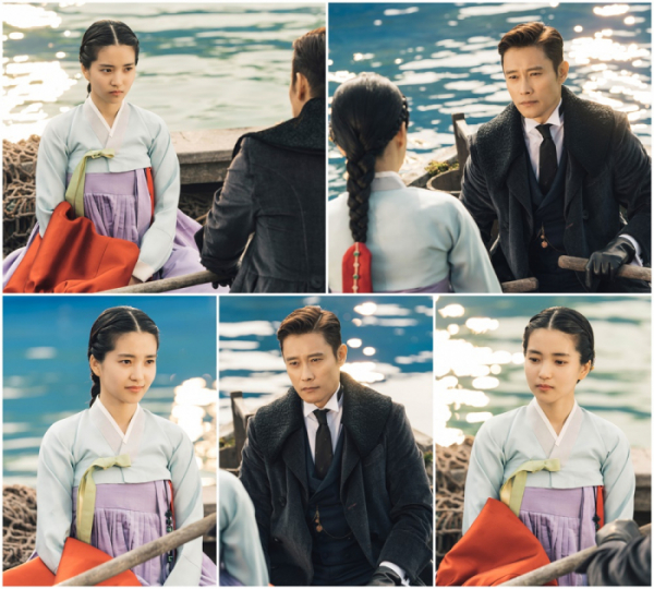tvN 토일드라마 '미스터 션샤인' 측은 13일 유진(이병헌 분)과 애신(김태리 분)이 한 배를 타고 있는 모습을 공개했다.