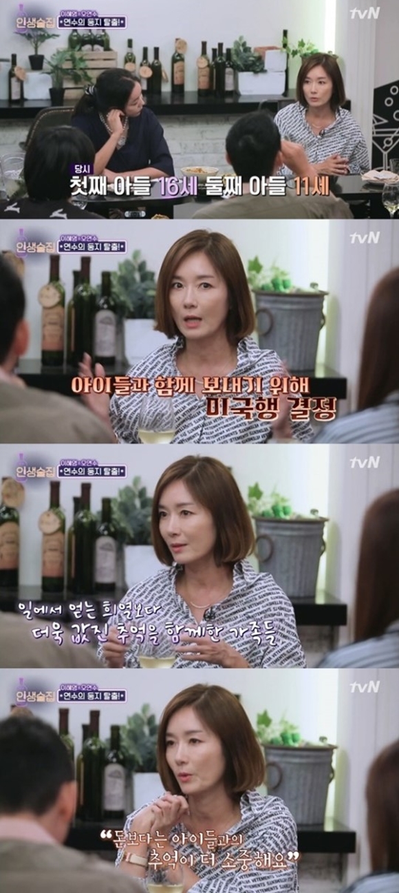 오연수는 19일 방송된 tvN '인생술집'에서 "아이들을 위해 미국으로 떠났다"라고 밝혔다.
