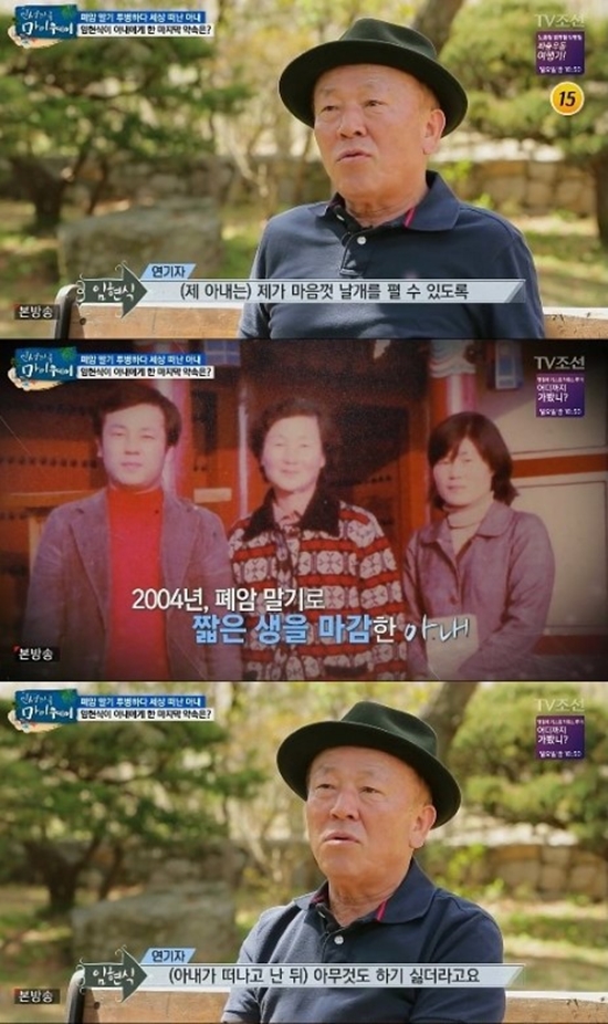 이날 임현식은 지난 2004년 폐암 말기로 생을 마감한 아내를 회상하며 "제가 마음껏 날개를 펼 수 있도록 젊은 시절 나를 많이 도와줬다. 초등학교 교사로 바쁜 생활 중에도 딸 셋을 길러내느라고 애썼다"고 말했다.