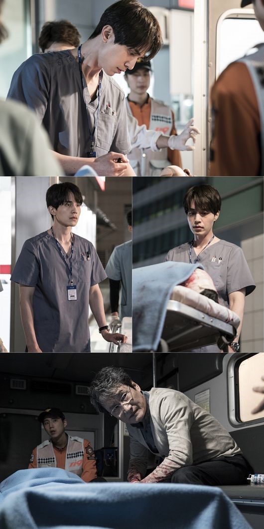 공개된 사진 속 응급의료센터 전문의 예진우는 기다리던 구급차에서 누군가를 확인하고 입을 굳게 다문다. 구급차에 앉아 있는 김태상 역시 망연자실한 표정이다. 제작진은 "첫 회부터 한 순간도 놓쳐선 안 될 빈틈없는 전개가 펼쳐진다"고 전했다.