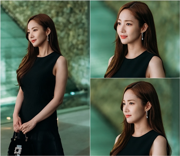 공개된 사진 속 김미소는 평소 김비서의 화려한 블라우스와 H스커트가 아닌, 블랙 원피스를 입고 있다.