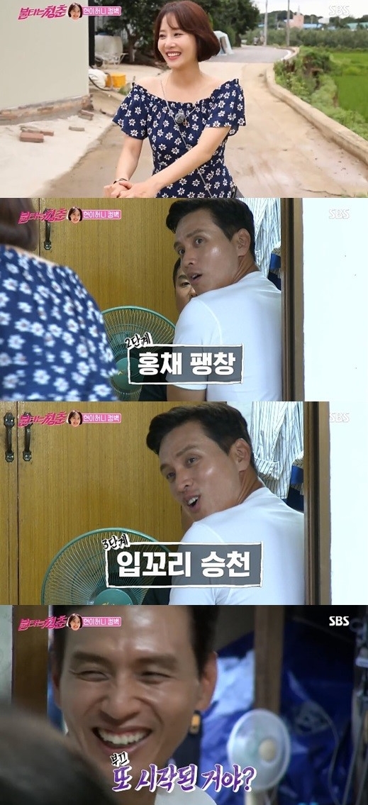 구본승이 지난달 31일 방송된 SBS '불타는 청춘'에서 강경헌이 등장하자 웃음을 보였다.