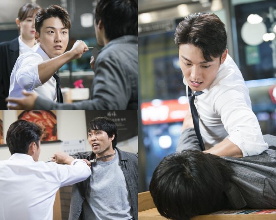 공개된 사진 속 한강호는 칼을 든 어떤 남자와 대치하고 있다. 한강호에게 칼을 들이댄 남자는 지난 방송에서 재벌 3세 갑질 폭행사건 피해자 아들로 등장했던 신반장(정민성 분)이다. 굳은 표정으로 신반장과 대치하고 있는 한강호. 칼날이 조금이라도 스치면 목숨까지 잃을 수도 있는 일촉즉발의 상황이다.