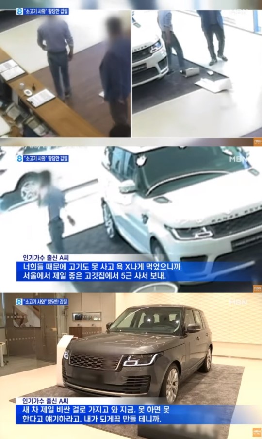MBN 뉴스는 1일 "90년대 인기가수 A씨가 2년 전 구입한 차량에 결함이 생기자 수입차 매장을 찾아가 갑질을 했다"고 보도했다.