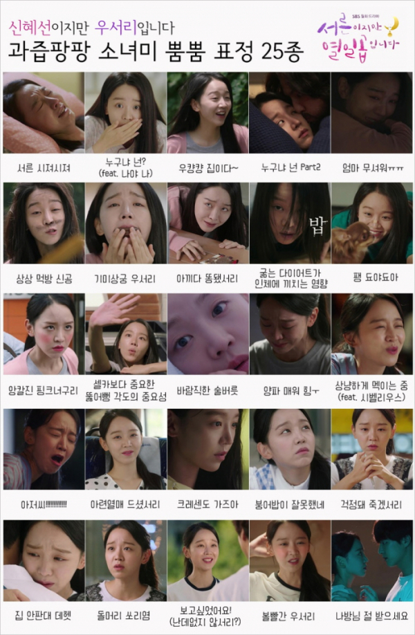 매회 시청률 고공행진을 이어가고 있는 SBS 월화드라마 ‘서른이지만 열일곱입니다’(이하 ‘서른이지만’)측이 27일 극중 꽃다운 열일곱에 불의의 교통사고를 당해 코마에 빠져 13년이라는 세월을 점프해버린 서른 살의 ‘멘탈-피지컬 부조화女’ 우서리 역을 맡아 열연중인 신혜선의 25종 표정 모음을 공개했다.