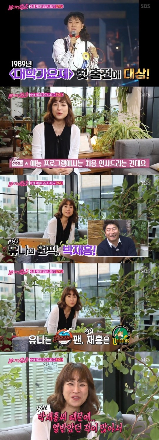 전유나는 4일 방송된 SBS '불타는 청춘'에서 "박재홍을 만났으면 좋겠다"라고 입을 열었다.