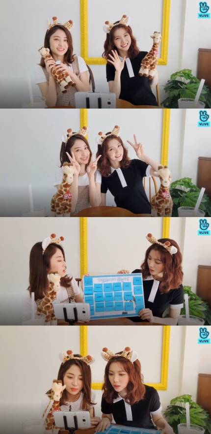 이가은과 허윤진은 8일 네이버 V라이브를 진행했다. 앞서 소속사 플레디스 엔터테인먼트 측은 지난 6일 공식 트위터를 통해 가은&윤진 일명 '기린즈'에게 묻고 싶은 질문들을 미리 공모한 바 있다.