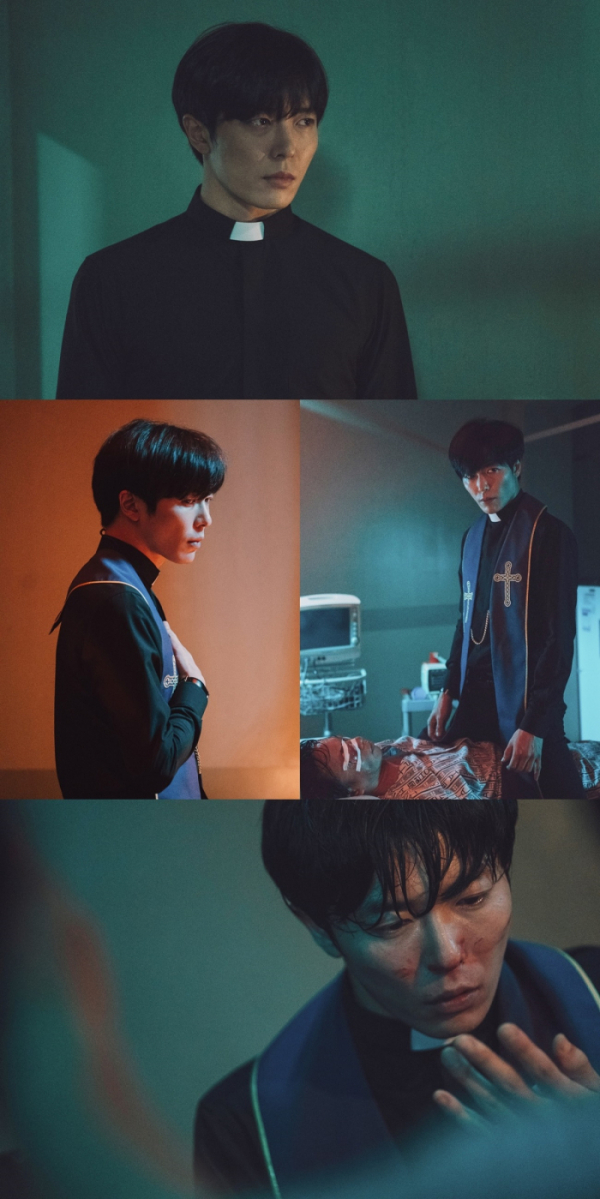 공개된 사진에는 차가운 카리스마를 뿜어내며 구마의식을 하는 최윤의 모습이 담겼다. 묵직한 분위기와 냉철한 눈빛으로 무언가를 응시하고 있는 최윤은 김영수(전배수 분)에게 구마의식을 하고 있다.
