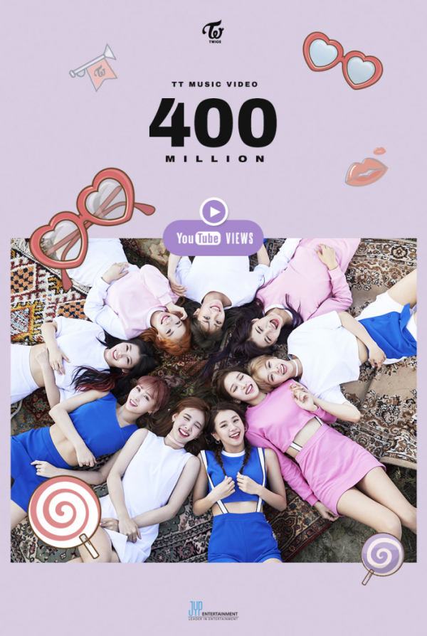트와이스가 지난 2016년 10월 24일 12시 공개한 미니 3집 'TWICEcoaster : LANE 1'의 타이틀곡 'TT' MV는 17일 오후 1시 55분께 유튜브 조회수 4억건을 달성했다. 이로써 트와이스는 국내 여성 가수 최초로 유튜브에서 4억뷰 MV를 보유한 그룹으로 등극했다. 'TT' MV는 작년 12월 22일 한국 여성 아티스트 최초 3억뷰를 돌파해 새 역사를 쓴 바 있다.