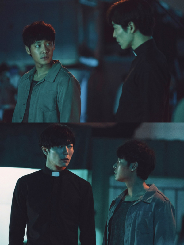 무엇보다 샤머니즘과 엑소시즘의 세계를 대변하는 윤화평과 최윤이 어떤 공조를 펼쳐나갈지 궁금증이 증폭되고 있는 상황. 공개된 두 사람의 날 선 대치 현장은 호기심을 더욱 자극한다. 무겁게 가라앉은 어둠 속 윤화평과 최윤의 서늘한 눈빛이 서로를 예리하게 겨누고 있다. 박일도를 찾으려는 집념과 부마자를 구하려는 열정으로 뜨겁게 타오르는 불같은 윤화평과 구마사제의 숙명을 묵묵히 짊어진 얼음 같은 최윤이 극과 극으로 빚어내는 강렬한 충돌은 결코 쉽지 않을 두 번째 공조를 예고한다.