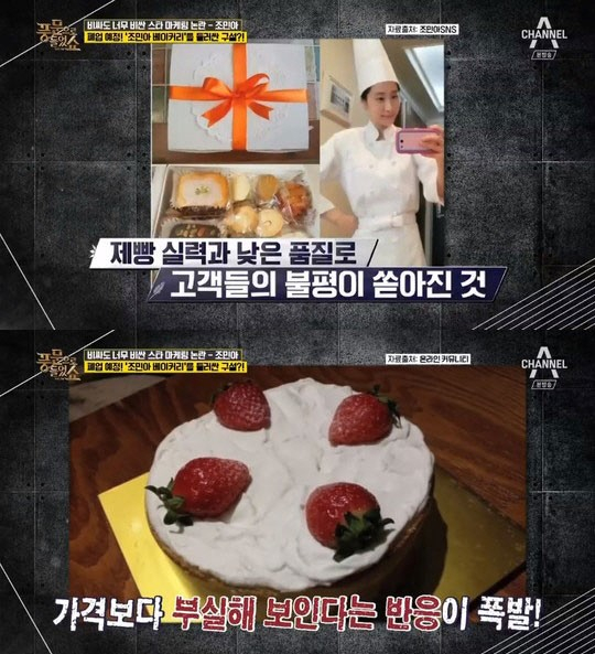 한편, 17일 방송된 채널A '풍문으로 들었쇼'에서는 12만 원 양갱 가격, 네일아트 손톱과 위생 장비 미착용 등 조민아 베이커리 논란이 다뤄졌다. 조민아는 건강상태 악화로 베이커리 운영을 종료한다.