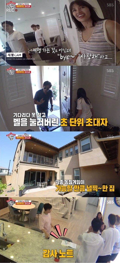 이날 '집사부일체' 멤버들은 차인표와 신애라의 미국 집을 방문했다. 1층에는 넓은 뒷마당을 비롯해 넓고 깔끔한 부엌이 눈길을 끌었다. 또 손님방 겸 차인표의 작업 공간도 이목을 집중 시켰다.