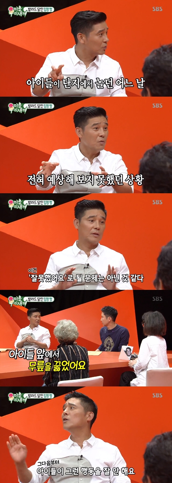 이날 서장훈은 "아이들 앞에서 무릎을 꿇었던 일이 있었다고 하던데, 무슨 말이냐"라고 물었다. 이에 임창정은 "남자 형제들이 기가 세다. 하루는 아파트 단지에서 우리 아이들이 한 아이를 괴롭히고 있었다. 내가 그 모습을 보고 너무 당황했고 어떻게 해야 할지 모르겠더라"라고 운을 뗐다.