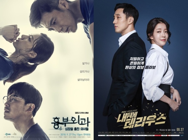 MBC 새 수목극 '내 뒤에 테리우스'와 SBS 수목극 '흉부외과:심장을 훔친 의사들'(이하 흉부외과)가 같은 날 첫 방송된 가운데, 누리꾼들의 반응이 뜨겁다.