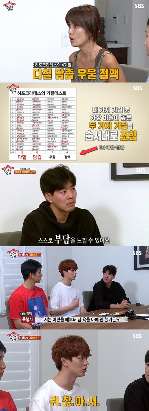 앞서 '집사부일체'에서 이승기는 '다혈-담즙', 육성재는 '다혈-점액', 양세형은 '우울-담즙', 이상윤은 '우울-점액'의 결과가 나왔다.