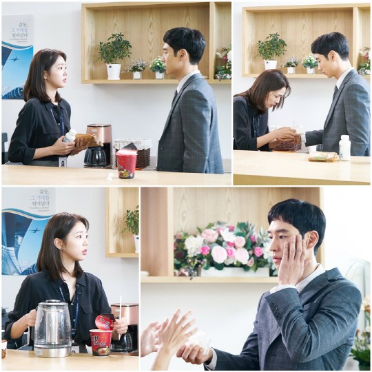 '여우각시별' 제작진은 "이번 장면을 통해 이제훈, 채수빈 '신입 커플'의 좌충우돌 로맨스가 본격적으로 서막을 올리게 될 것"이라며 "탕비실이라는 조용하고 좁은 공간에서 발산될, 두 사람만의 케미가 어떠한 나비효과를 불러일으키게 될지 기대해 달라"고 전했다.