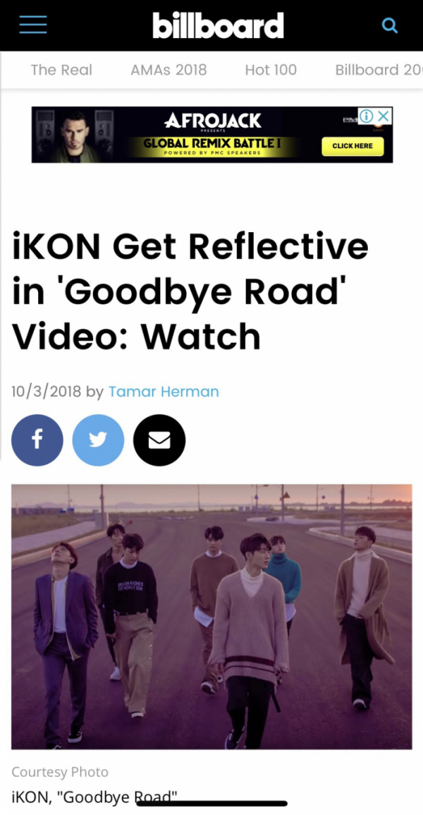 3일(현지 시간) 빌보드는 ‘아이콘, ‘이별길’ 뮤직비디오에서 과거를 추억하다(iKON Get Reflective in 'Goodbye Road' Video: Watch)’라는 제목의 글을 공개했다.