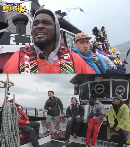 본격적인 낚시에 돌입하자 비가 내리기 시작하고 궂은 날씨에 서로의 말이 잘 전달되지 않자 오취리는 똑같은 질문을 여러 번 반복하며 웃음을 자아냈다.
