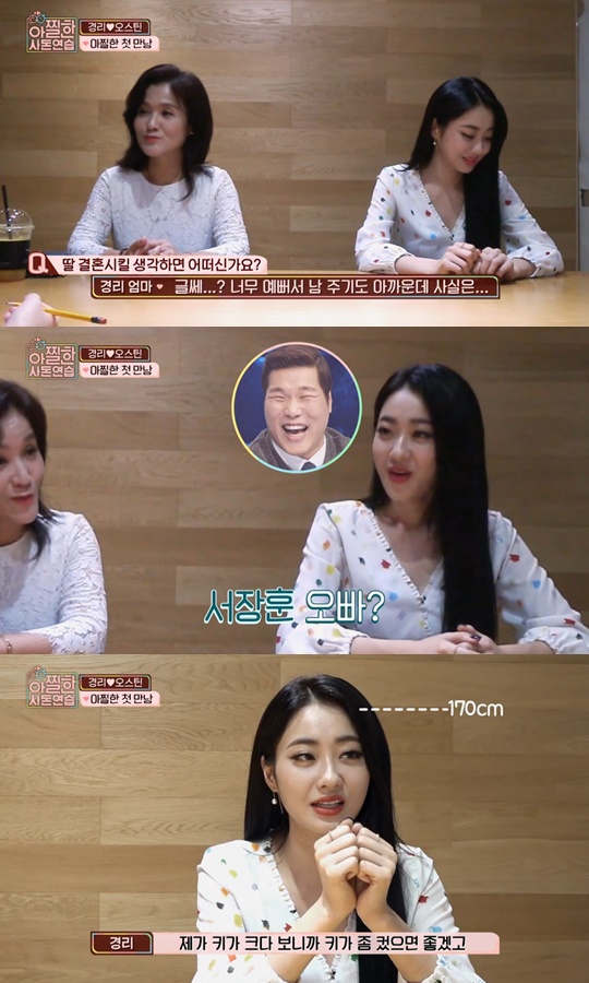 제작진은 경리 어머니에게 "사윗감으로 어떤 사람이 나오면 좋겠는가?"라고 물었다. 경리 어머니는 "개인적으로 완벽한 남자를 좋아한다. 서장훈 씨 같은 스타일이면 좋겠다. 나이는 어려야 한다"고 털어놨다. 경리는 너털웃음을 터뜨렸다. 경리는 "내 키가 170cm다. 그래서 키 큰 남자가 좋다. 얼굴도 잘생기면 더 좋을 것 같다"고 밝혔다.
