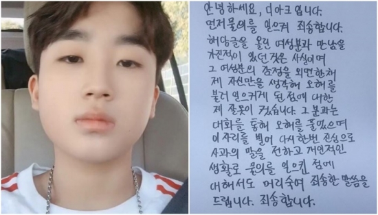 디아크는 6일 자신의 인스타그램에 “물의를 일으켜 죄송하다”며 자필 사과문을 올렸다.