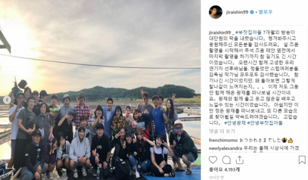 이어 "설 즈음 촬영을 시작해서 추석 즈음 태안 염전에서 마지막 촬영을 하기까지 참 길기도 긴 시간이었습니다. 오랜 시간 함께 고생한 우리 연기자 선후배님들, 정들었던 스태프 여러분들, 감독님, 작가님 모두 모두 감사했습니다"라고 덧붙였다.