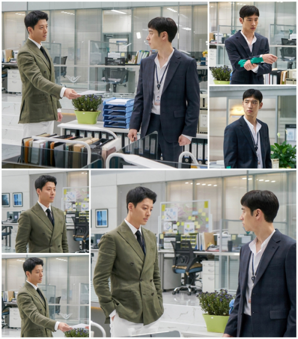 공개된 사진에는 이수연의 행동을 유심히 지켜보던 서인우가 이수연 앞에 나타나 뼈 있는 대화를 이어가는 것. 갑작스러운 서인우의 등장에 다소 당황한 듯한 이수연은 이내 적개심 가득한 눈빛을 드러내며 날카롭게 반응하고, 서인우는 이수연에게 경계를 거두지 않은 상태로 종이를 건네줘 팽팽한 기 싸움의 시작을 알린다.