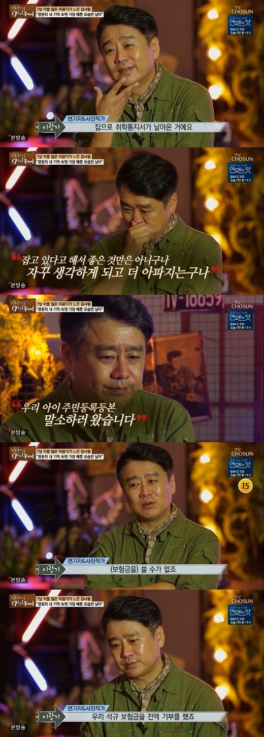 그러면서 그는 "그 때 마침 석규의 보험금이 통장에 들어왔는데 그 취학통지서 받은 느낌이었다. 그 통장을 안고 얼마나 울었는지 모른다. 그런데 이 돈을 찾을 수가 없더라. 돈을 쓸 수가 없었다. 그래서 제가 기부단체에 우리 석규 보험금을 전액 기부 했다"라고 회상했다.